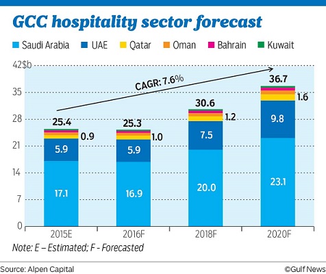 A new report by Alpen Capital reveals ‘immense growth potential’ of the regional hospitality industry, despite a slowdown in 2016. A report by Alpen Capital, an investment banking advisory firm, indicates the GCC hospitality market is expected to grow at a 7.6% CAGR from an estimated US$25.4 billion (AED93.3 billion) in 2015 to US$36.7 billion
